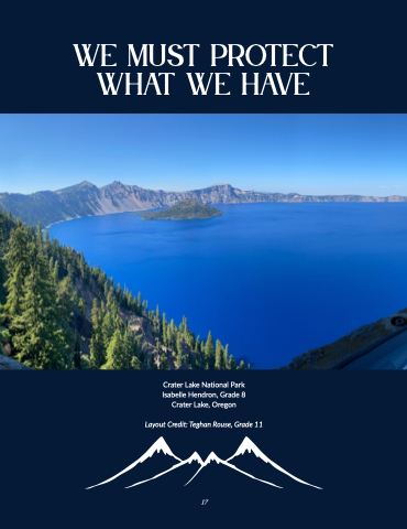 We Must Protect What We Have Crater Lake National Park Isabelle Hendron, Grade 8 Crater Lake, Oregon Layout Credit: Teghan Rouse, Grade 11 17