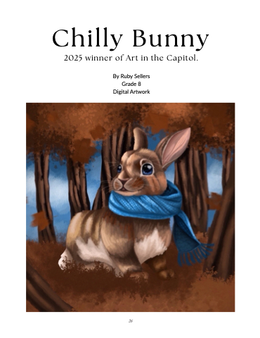 Chilly Bunny 2025 winner of Art in the Capitol. By Ruby Sellers Grade 8 Digital Artwork 26