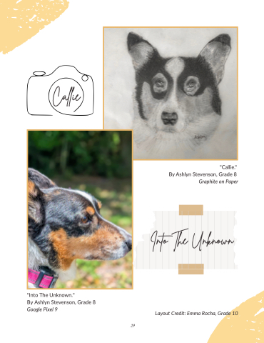 Callie "Callie. " By Ashlyn Stevenson, Grade 8 Graphite on Paper Into The Unknown "Into The Unknown. " By Ashlyn Stevenson, Grade 8 Google Pixel 9 Layout Credit: Emma Rocha, Grade 10 29