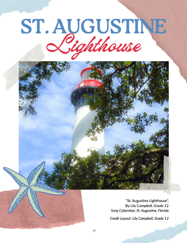 ST. AUGUSTINE Lighthouse “St. Augustine Lighthouse” , By Lily Campbell, Grade 12 Sony Cybershot, St. Augustine, Florida Credit Layout: Lily Campbell, Grade 12 39