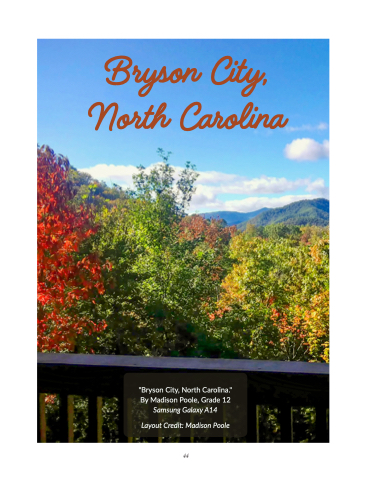 Bryson City, North Carolina "Bryson City, North Carolina. " By Madison Poole, Grade 12 Samsung Galaxy A14 Layout Credit: Madison Poole 44