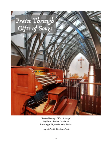 Praise Through Gifts of Songs "Praise Through Gifts of Songs. " By Emma Rocha, Grade 10 Samsung A71, Ave Martia, Florida Layout Credit: Madison Poole 46
