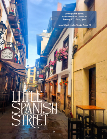 "Little Spanish Street. " By Emma Rocha, Grade 10 Samsung A71, Potes, Spain Layout Credit: Indira Handa, Grade 11 Little Little Spanish Spanish Street Street 50