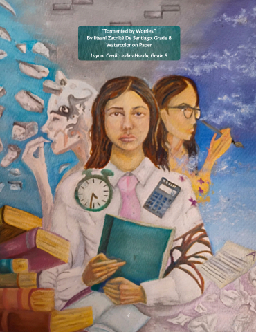 "Tormented by Worries. " By Iltsani Zacnité De Santiago, Grade 8 Watercolor on Paper Layout Credit: Indira Handa, Grade 8 6