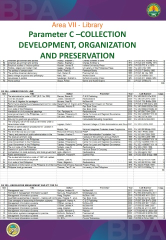 Area VII - Library Parameter C –COLLECTION DEVELOPMENT, ORGANIZATION AND PRESERVATION