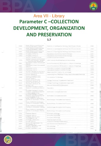 Area VII - Library Parameter C –COLLECTION DEVELOPMENT, ORGANIZATION AND PRESERVATION 1.7