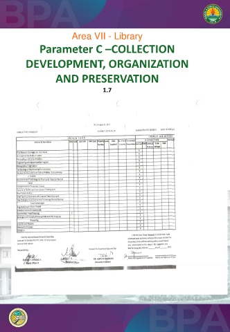 Area VII - Library Parameter C –COLLECTION DEVELOPMENT, ORGANIZATION AND PRESERVATION 1.7