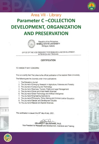 Area VII - Library Parameter C –COLLECTION DEVELOPMENT, ORGANIZATION AND PRESERVATION