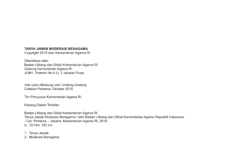 Tanya Jawab Moderasi Beragama / oleh Badan Litbang dan Diklat Kementerian Agama Republik Indonesia.
