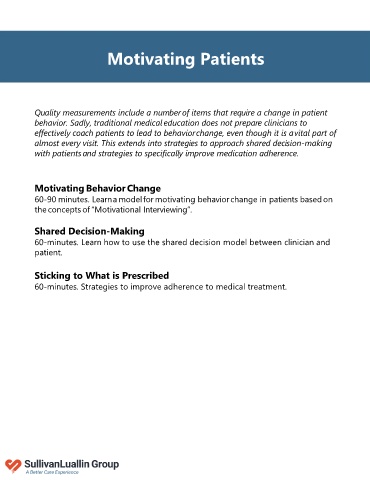 60-90 minutes. Learn a model for motivating behavior change in patients based on