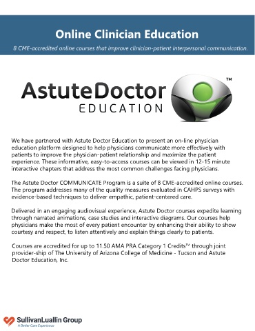 The Astute Doctor COMMUNICATE Program is a suite of 8 CME-accredited online courses.