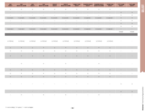 • = serienmäßig / O = option / - = nicht verfügbar