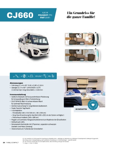 28 ∙ FAMILI COMPACT (d): Der Tank kann auf 95 oder 110 Liter befüllt werden. Diese Erhöhung verringert die Nutzlast.