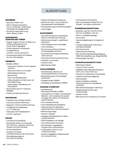 • Großes Oberlicht im Wohnraum • WC mit herausziehbarer Kassette • Rad-Reparaturset