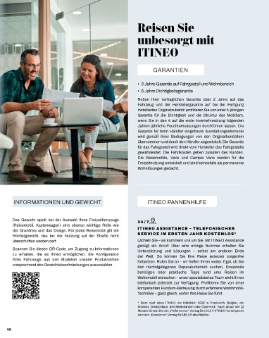 der Grundriss und das Design. Für jedes Reisemobil gilt ein ITINEO ASSISTANCE – TELEFONISCHER