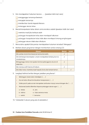 5. Edo mendapatkan hukuman karena . . . . (jawaban lebih dari satu)