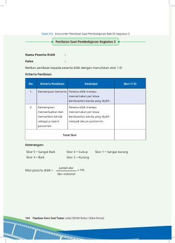 Tabel 3.5 Instrumen Penilaian Saat Pembelajaran Bab III Kegiatan 3