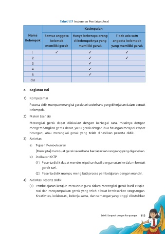 Peserta didik mampu merangkai gerak tari sederhana yang dikerjakan dalam bentuk