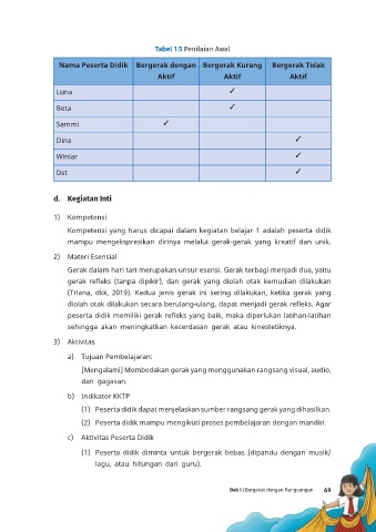 Nama Peserta Didik Bergerak dengan Bergerak Kurang Bergerak Tidak