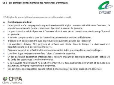 ▪ Le questionnaire médical permet à l'assureur d‘avoir une juste connaissance du risque qu'il prend