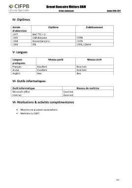 Page 141 - CIFPB_Brevet_Bancaire_Métiers_CC_OBO_Annuaire_CVs_Animateurs