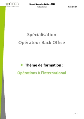 Brevet Bancaire Métiers BBM Année 2016-2017 Cv des animateurs Spécialisation Opérateur Back Office Thème de formation : Opérations à l’international 187