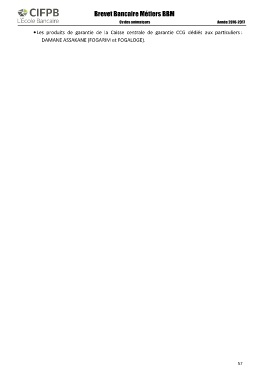 Brevet Bancaire Métiers BBM Année 2016-2017 Cv des animateurs • Les produits de garantie de la Caisse centrale de garantie CCG dédiés aux particuliers : DAMANE ASSAKANE (FOGARIM et FOGALOGE). 57
