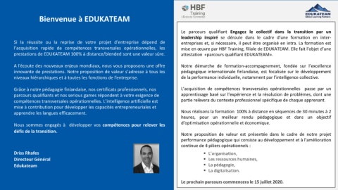 l’acquisition rapide de compétences transversales opérationnelles, les mise en œuvre par HBF Training, filiale de EDUKATEAM. Elle fait l’objet d’une