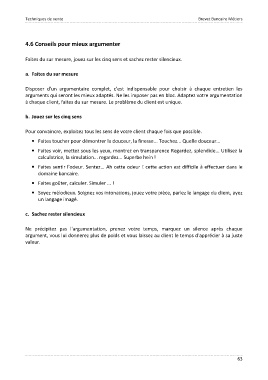 argument, vous lui donnerez plus de poids et vous laissez au client le temps d'apprécier à sa juste