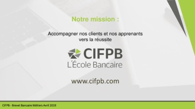 Notre mission : Accompagner nos clients et nos apprenants vers la réussite www.cifpb.com CIFPB - Brevet Bancaire Métiers Avril 2019