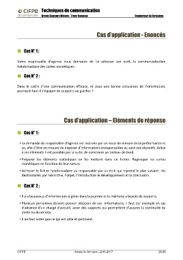 • Adresser le fichier hebdomadaire au responsable par un écrit qui reprend le plan suivant : les