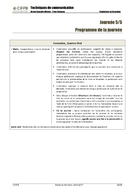• Matin : Examen blanc, mise en situation · L'animateur accueille les participants, rappelle les règles à respecter