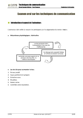 L’animateur doit veiller à rassurer les participants par la vulgarisation du terme « trac ».