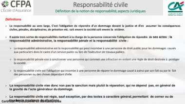 ➢ la responsabilité civile est l’obligation qui incombe à une personne de réparer le dommage causé à autrui par son fait ou par le fait