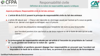 Aspects juridiques; Responsabilité civile du fait des animaux