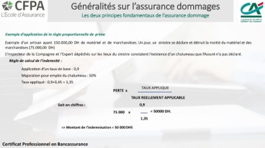 Exemple d’un artisan ayant 150.000,00 DH de matériel et de marchandises. Un jour, un sinistre se déclare et détruit la moitié du matériel et des