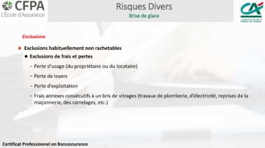 − Frais annexes consécutifs à un bris de vitrages (travaux de plomberie, d’électricité, reprises de la