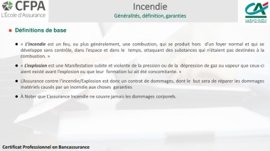 ⚫ L’Assurance contre l’incendie/Explosion est donc un contrat de dommages, dont le but sera de réparer les dommages