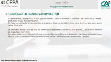 La circulation des gaz chauds vers les points hauts disponibles ( cheminée, faux plafond,..) entraîne un transfert