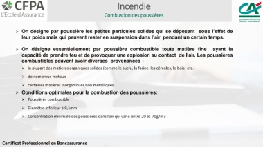 capacité de prendre feu et de provoquer une explosion au contact de l'air. Les poussières