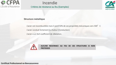 L’acier est incombustible mais il perd 50% de ses propriétés mécaniques vers 500°C