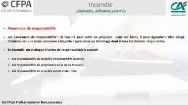 ➢ En incendie, on distingue 3 sortes de responsabilités à assurer: