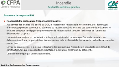 d’incendie/explosions survenus au bâtiment. La responsabilité du locataire est considérée présumée, le