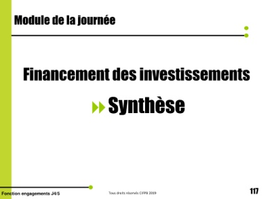 Module de la journée Financement des investissements Synthèse 117 Fonction engagements J4/5 Tous droits réservés CIFPB 2019