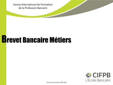 Centre International de Formation de la Profession Bancaire Brevet Bancaire Métiers 103 Tous droits réservés CIFPB 2019