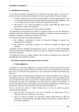 • Cession en réassurance de risques souscrits au Maroc. Cette cession peut porter, soit
