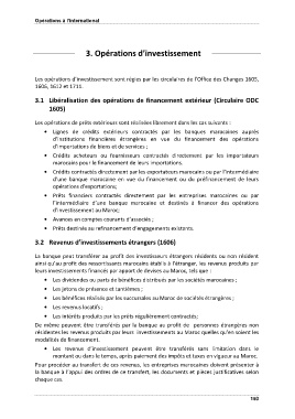 Les opérations d’investissement sont régies par les circulaires de l’Office des Changes 1605,