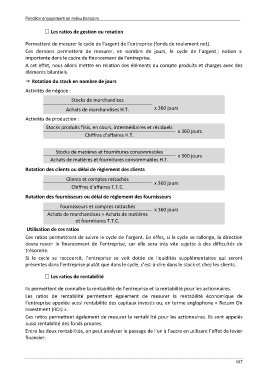 Permettent de mesurer le cycle de l’argent de l’entreprise (fonds de roulement net).
