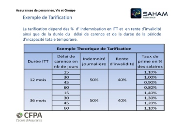 indemnisation carence de Exemple Theorique de Tarification Indemnité journalière 50% 50%