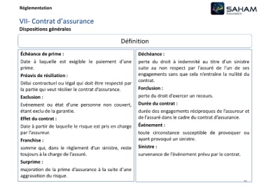 Réglementation VII- Dispositions générales prime de Échéance laquelle à Date prime. résiliation de Préavis contractuel Délai veut qui partie la : Exclusion ou Evénement la de exclu étant : contrat du Effet de partir à Date l’assureur. par : Franchise dans qui, somme charge la à toujours : Surprime la de majoration du aggravation © Copyright Allianz SE